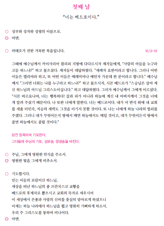 교황님을 위한 9일기도 첫째 날 : 너는 베드로이다