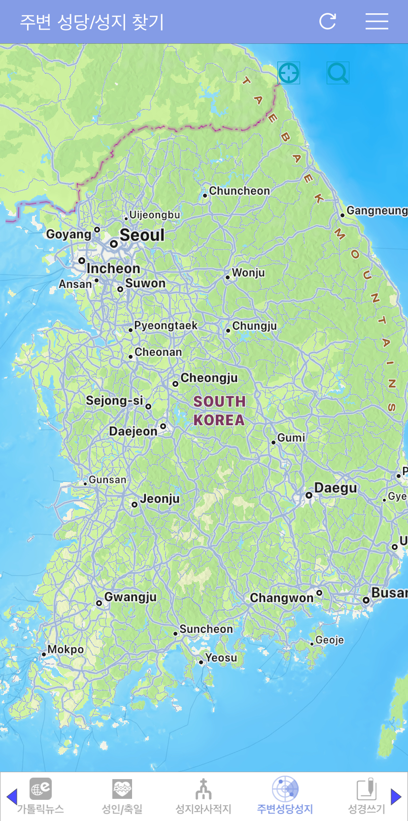 - 주변 성당/성지 찾기: 현재 내가 있는 위치에서 가까운 50개의 성당/성지를 찾아서 상세한 정보를 볼수 있으며 지도를 이동하여 주변 성당을 검색할 수 있습니다.