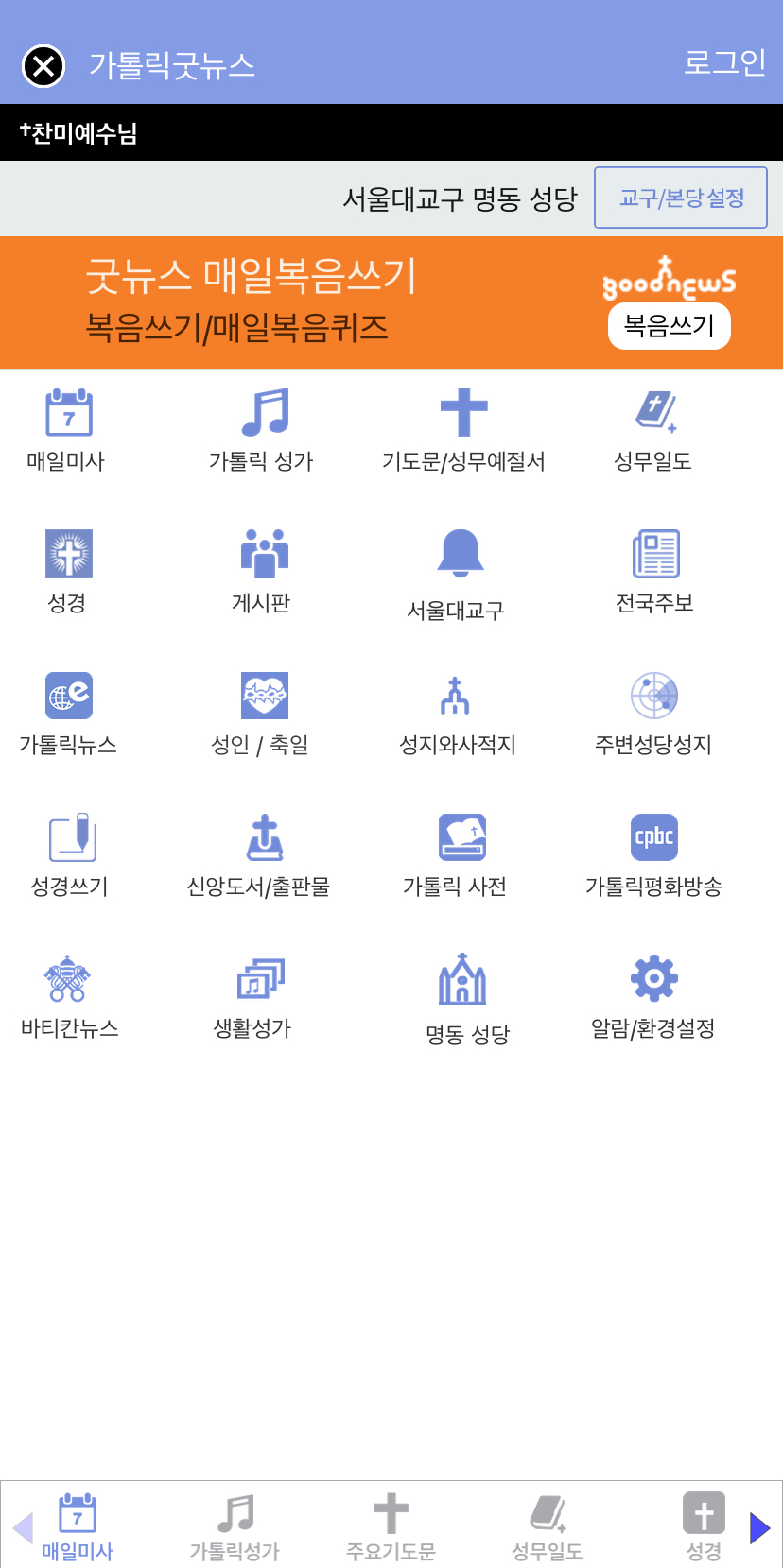- 내 본당 메뉴 : 설정된 내 본당 주소, 정보, 갤러리 등을 볼 수 있습니다.