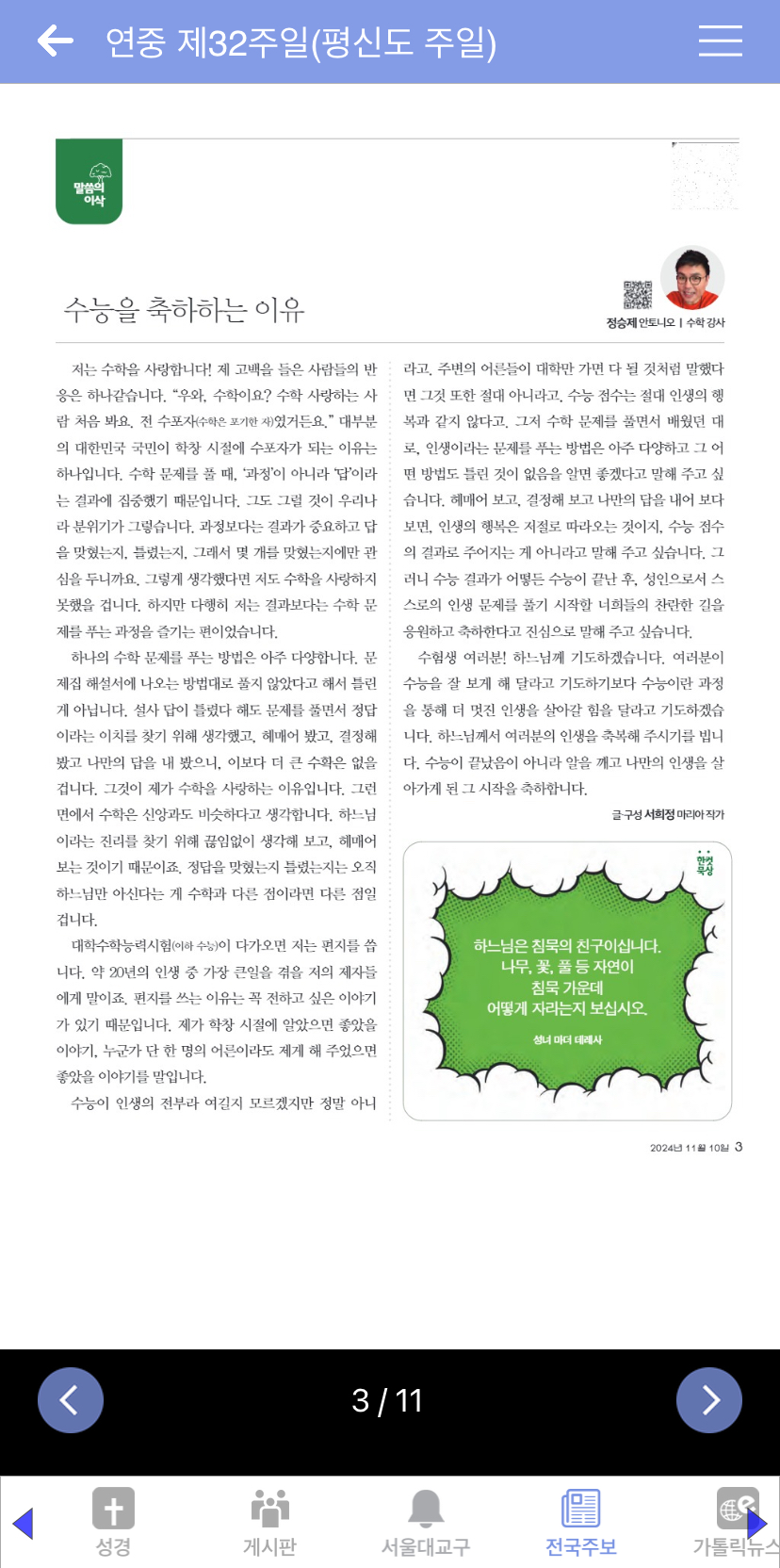 - 전국주보 : 전국 교구 및 교황청 소식지인 ‘전국주보’를 주보 형태 그대로 볼 수 있습니다.
