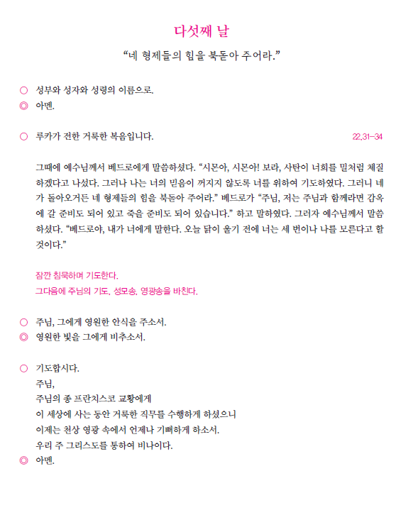 목차 +주님프란치스코 교황님께 영원한 안식을 주소서. 영원한 빛을 그에게 비추소서. 프란치스코 교황님과 세상을 떠난 모든이가 하느님의 자비로 평화의 안식을 얻게 하소서 프란치스코 교황