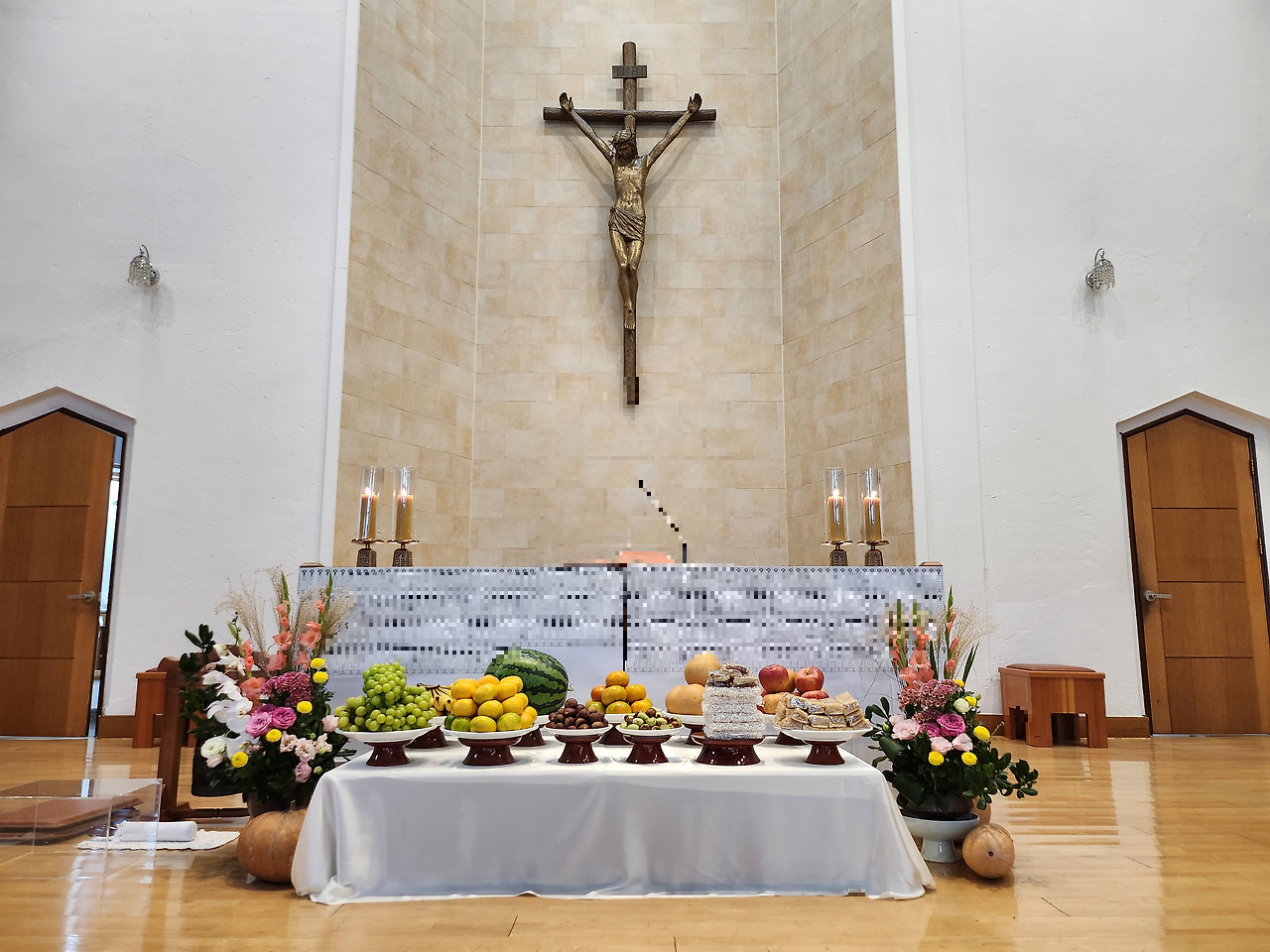 오늘은 우리 민족의 큰 명절 한가위입니다. 계절의 변화를 섭리하시고 수확의 기쁨을 주시는 하느님 아버지께 감사드리며, 이웃과 서로 나누며 살아온 조상들의 아름다운 마음을 본받읍시다. 자신을 위해서만 재화를 모으는 어리석은 부자가 되지 않도록 우리도 나눔을 실천하기로 다짐하며 주님의 잔치에 참여합시다.